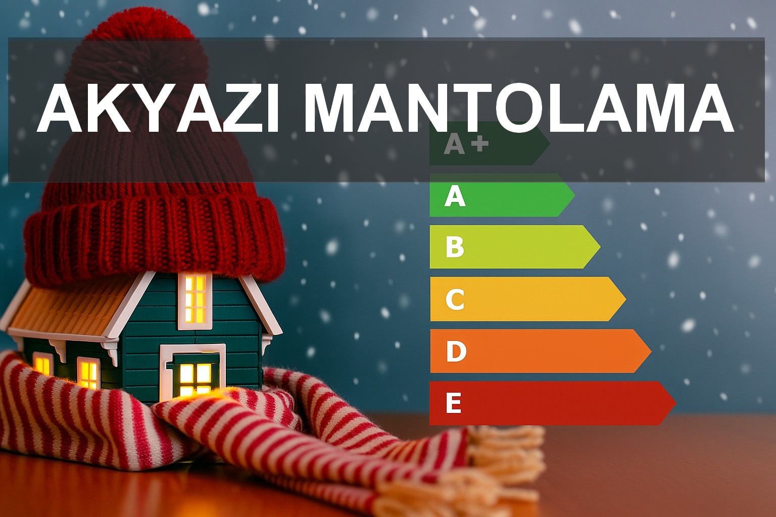 Resim: Dış cephe yalıtımı ile enerji verimliliği ve yasal düzenlemelerin simgeleri. Kanunen dış cephe yalıtımı zorunlu hale getirilmiştir. 2000 yılında yürürlüğe giren “Binalarda Isı Yalıtım Yönetmeliği” ile binalara mantolama yapma zorunluluğu getirilmiştir. 2008’de ise “Binalarda Enerji Performansı Yönetmeliği” devreye alınmış ve yeni yapılarda enerji kimlik belgesi alınabilmesi için en az “C” sınıfı enerji verimliliği şartı aranmaktadır. Buna göre mantolama yapılmamış bir binanın enerji kimlik belgesi alması mümkün değildir. Dolayısıyla mantolama, hem ekonomik avantaj hem de yasal bir gerekliliktir.